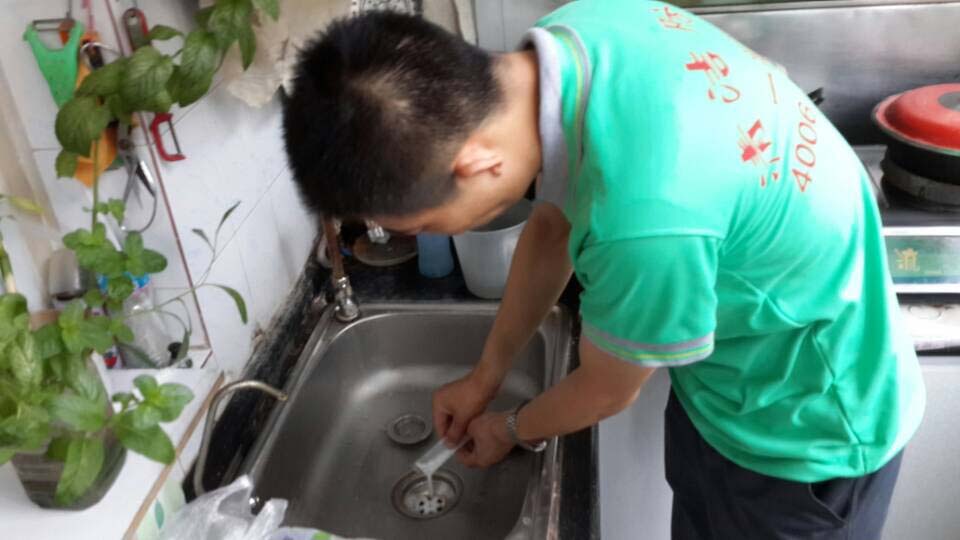 疏通人员往下水道倒入两袋“一灌通”,又加入水,只听管道中发出轻微“刺刺”的响声,呼噜噜一声管道便通畅多了。随后,疏通人员又顺便将厕所、洗脸池等其他有地漏、管道的地方一并帮着疏通了。