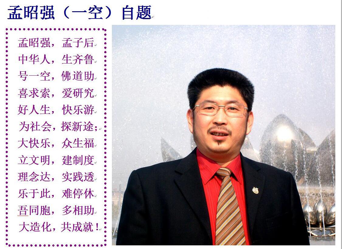 孟昭强:号“一空”;修行者,哲学家。 快乐人生哲学研究者、实践者、传播者。