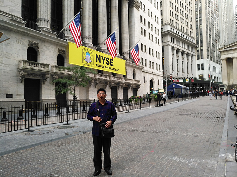 孟昭强在华尔街旁的世界贸易中心大街