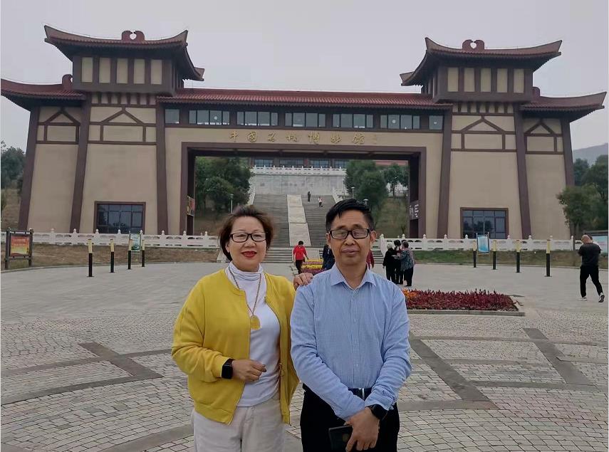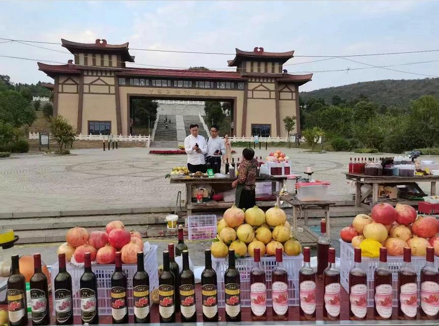 昌盛生态公司刘凡亚董事长、鲍海萍总经理在中国石榴博物馆前