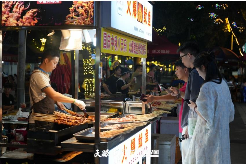 场外消费市场同样活跃。村超自媒体助农产品店百香果销售点负责人杨昌香表示,“随着游客增多,每天线上发货300多件,线下销售约3000斤,日营业额1万元左右。”在各小吃摊位前,杨梅汁、牛瘪、卷粉等特色美食受到游客青睐。“榕江美食很有特色,这次特地来感受‘村超’氛围,体验当地风土人情。”来自江苏淮安的游客称赞道。