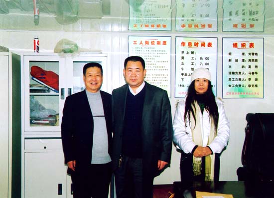 本报记者张绍元(左)、胡玉梅(右)和华盛总裁马连发(中)在华盛畜禽养殖示范基地