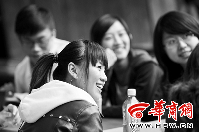 交大的多名研究生和本科生邀请“糖葫芦西施”小康在一起座谈、交朋友本报记者邓小卫摄