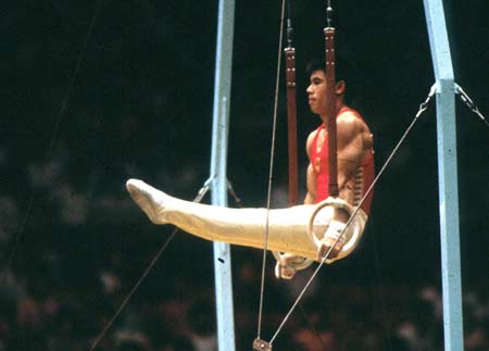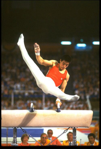 1984年 第23届奥运会自由体操、吊环和鞍马三枚金牌、跳马银牌和全能铜牌,男子团体银牌