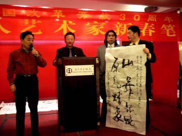 在纪念中国改革开放30周年·中外华人艺术家新春笔会上,黄涛(黄顺邡)先生现场挥毫泼墨和展示,赢得大家的赞赏和推崇。