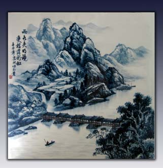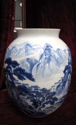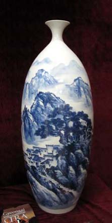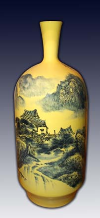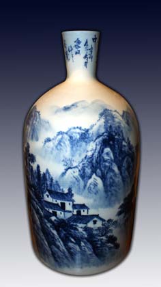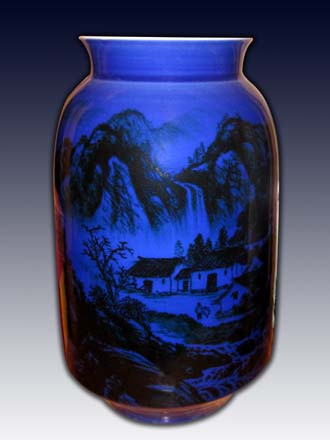 蓝色釉山水瓷瓶 乡村偶遇